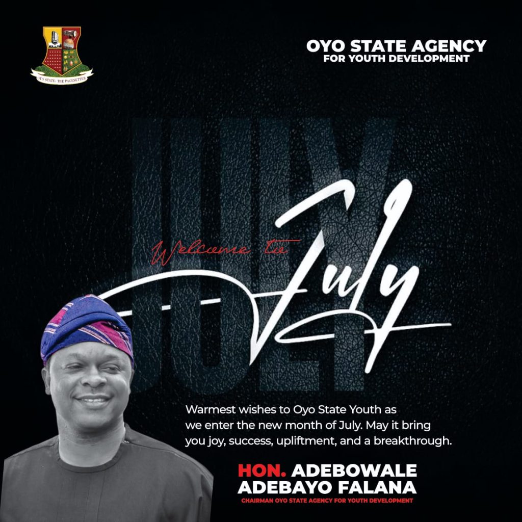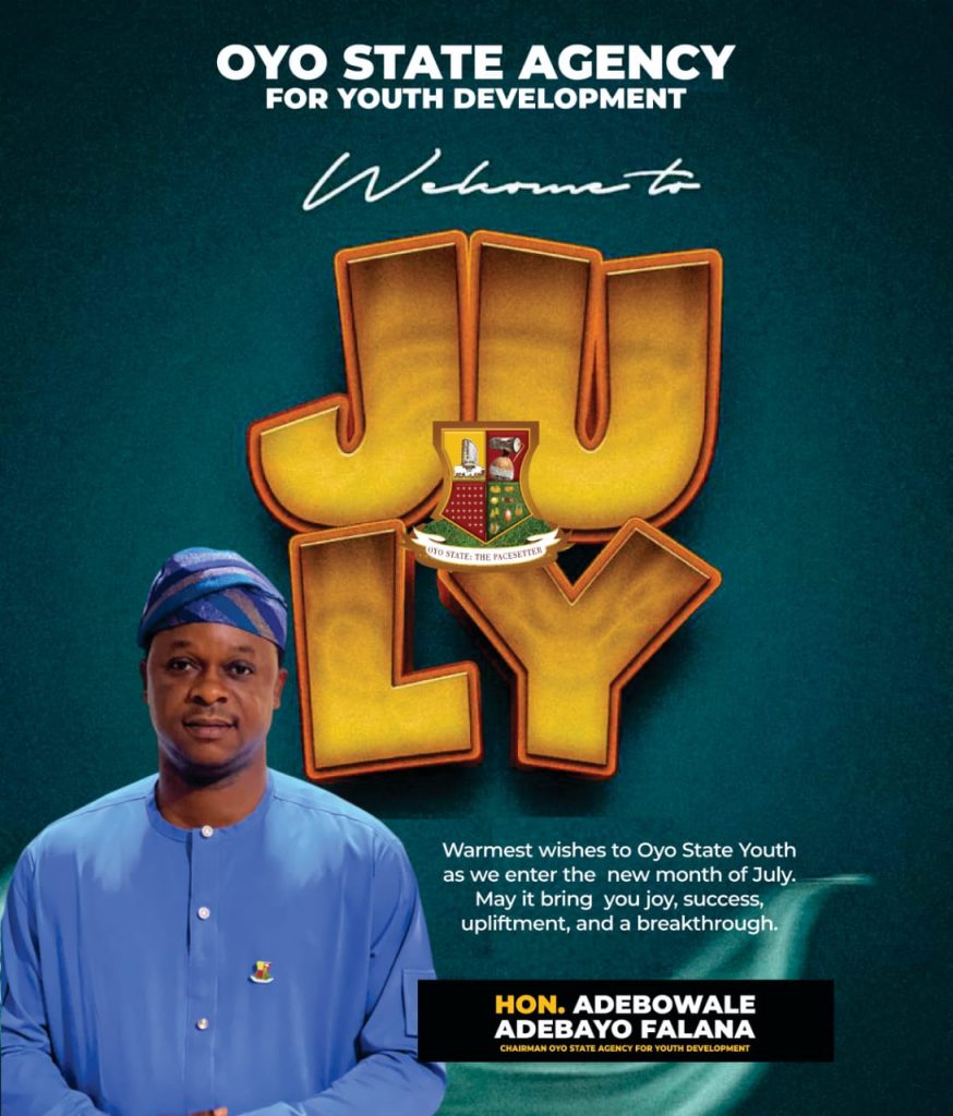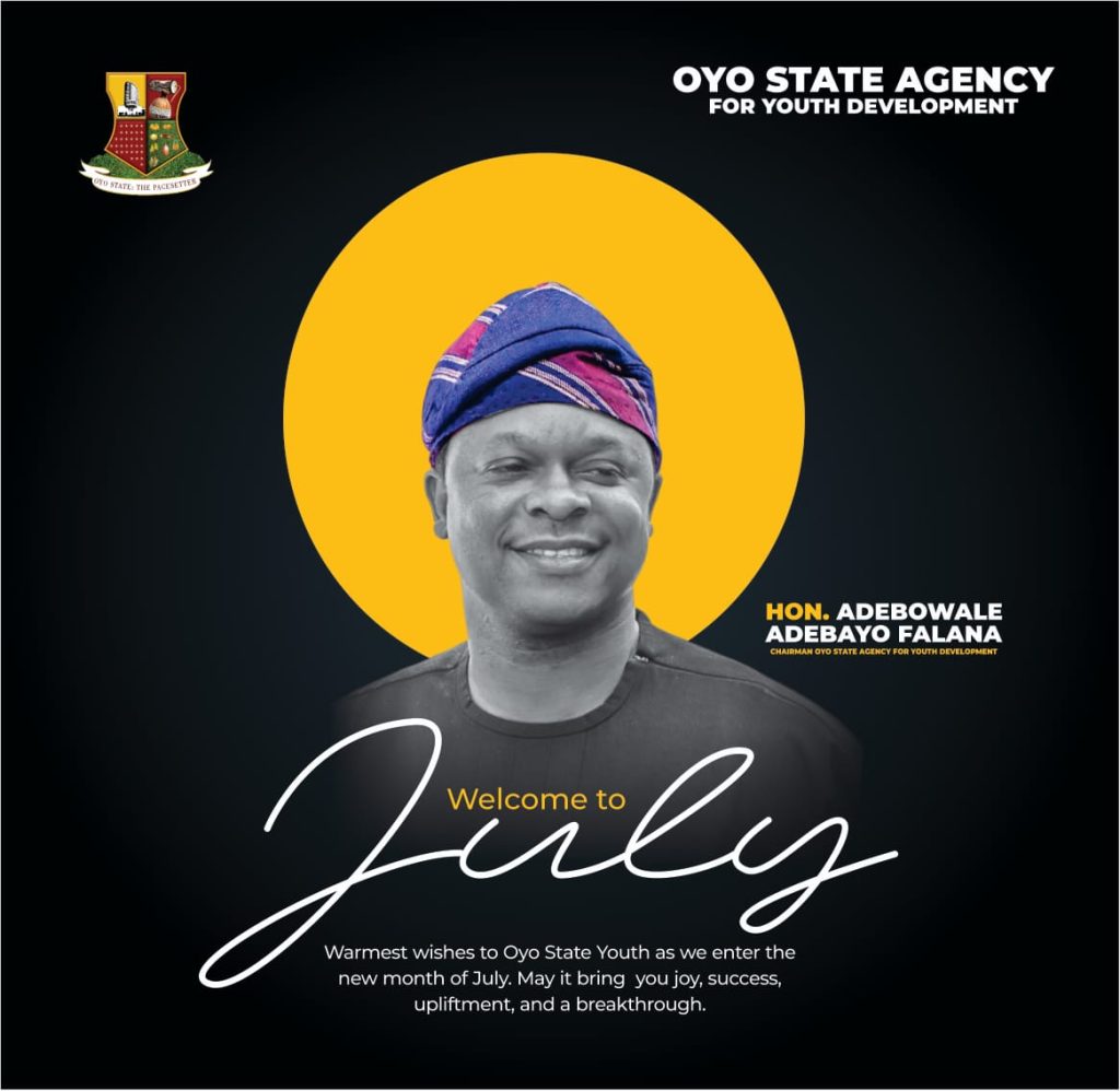 As the new Month of July, 2025, begins today, the Chairman of the Oyo State Agency for Youth Development, Hon. Adebowale Adebayo Falana, has issued a visionary message to the inspiring Oyo State Youth, urging them to stay focused and maintain an entrepreneurial mindset in their various domains.