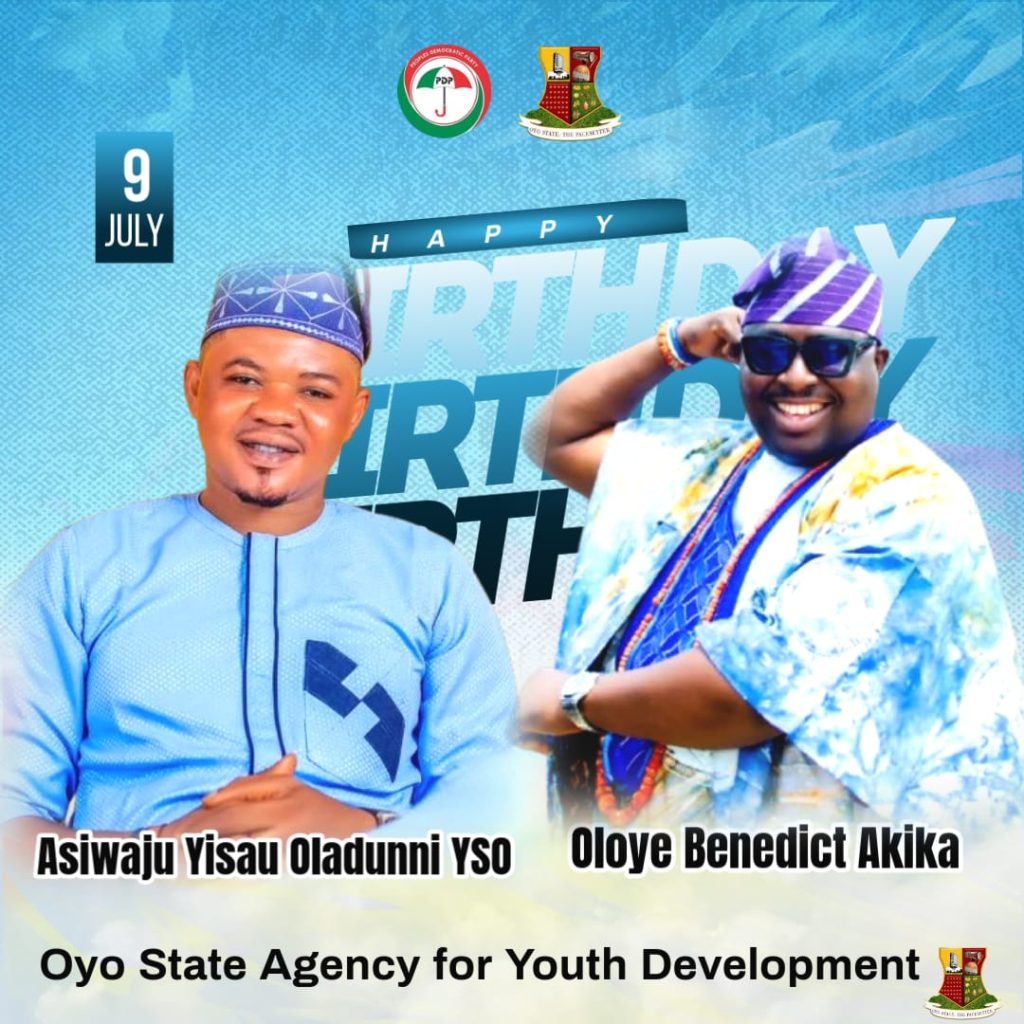 Hon. Adebowale Adebayo Falana, the Chairman of the Oyo State Agency for Youth Development, has extended warm birthday felicitations to Chief Benedict Akika and his Private personal secretary Asiwaju YSO, in celebration of their new age today.