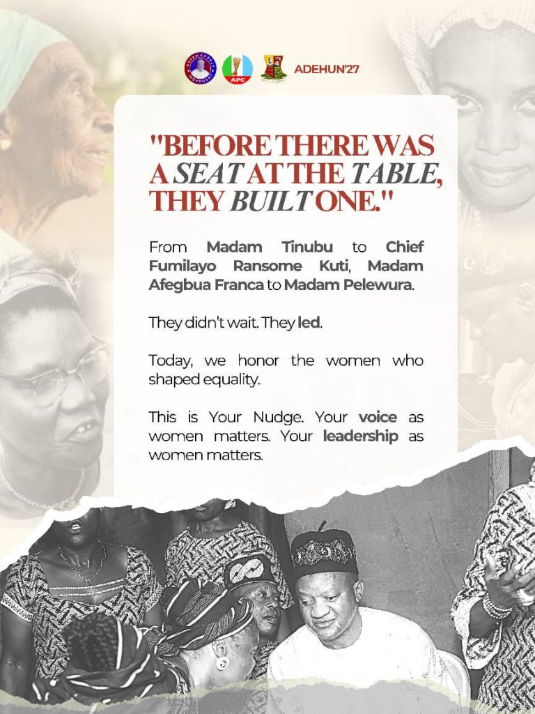 Chieftain of the All Progressives Congress (APC) in Oyo State and 2027 gubernatorial aspirant, Barr. Akeem Agbaje, has joined voices to mark International Women’s Equality Day, calling for greater participation of women in leadership and governance across all levels.