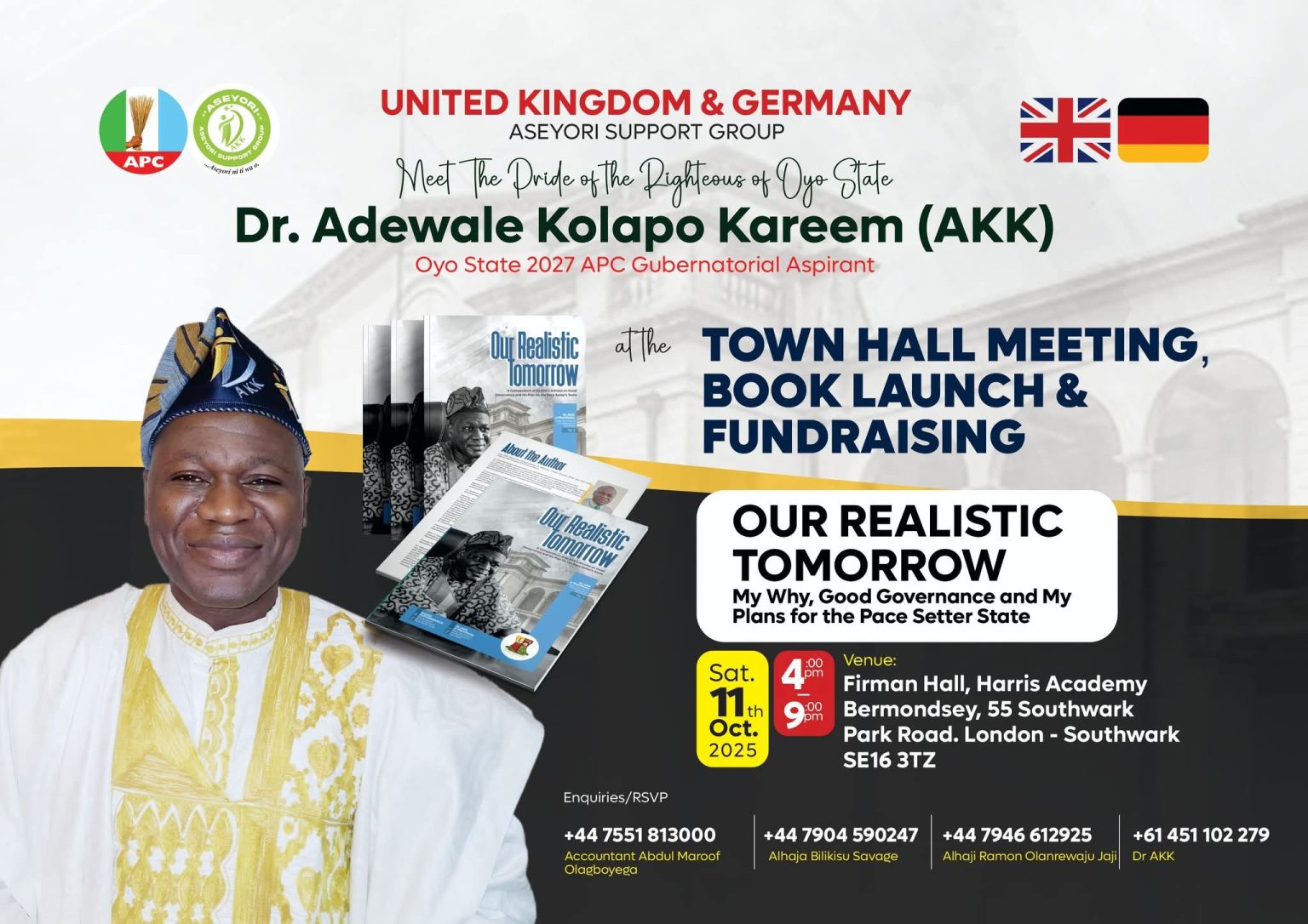 AKK United Kingdom/Germany Edition and New South Wales, Australia Town Hall Meeting, Book Launch and Fundraising Edition, Saturday 11th and 25th October, 2025 respectively.
