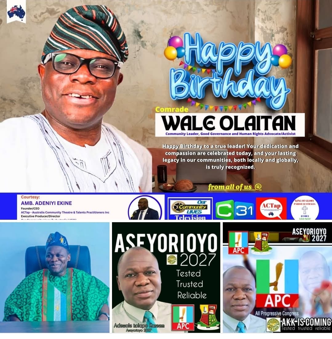 Celebrates Comrade Wale Olaitan Dr. Adewale Kolapo Kareem Heritage Echo News Heritageecho.com On birthday Oyo APC Guber Hopeful