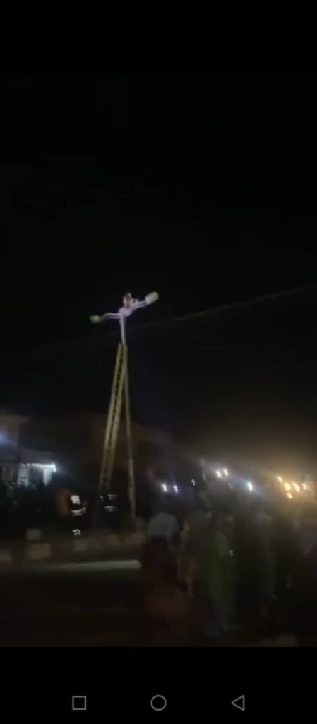 “On getting there, it was a man of about Forty-Five (45) years of age attempting to commit suicide by climbing an live electric street light pole on Tuesday night.