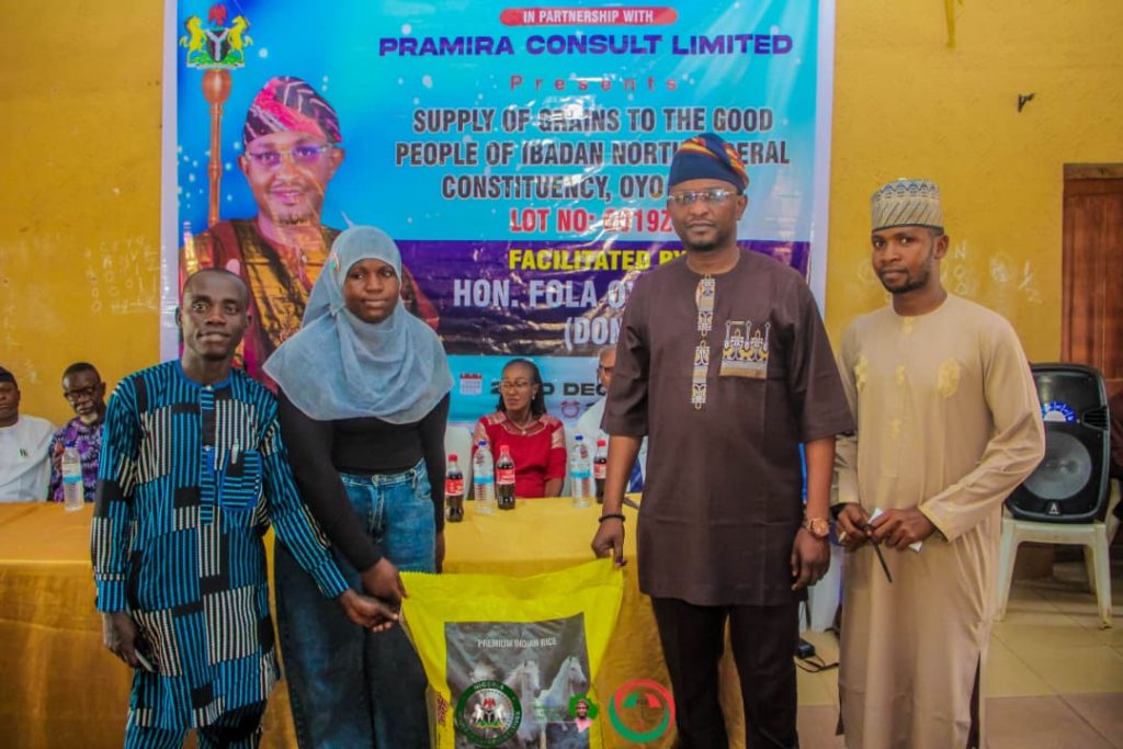 The Federal Lawmaker representing Ibadan North Federal Constituency, Hon. Folajimi Oyekunle (DoN), has facilitated the distribution of over 320 bags of rice to residents of the constituency as part of efforts to cushion the effects of economic hardship and promote food security.