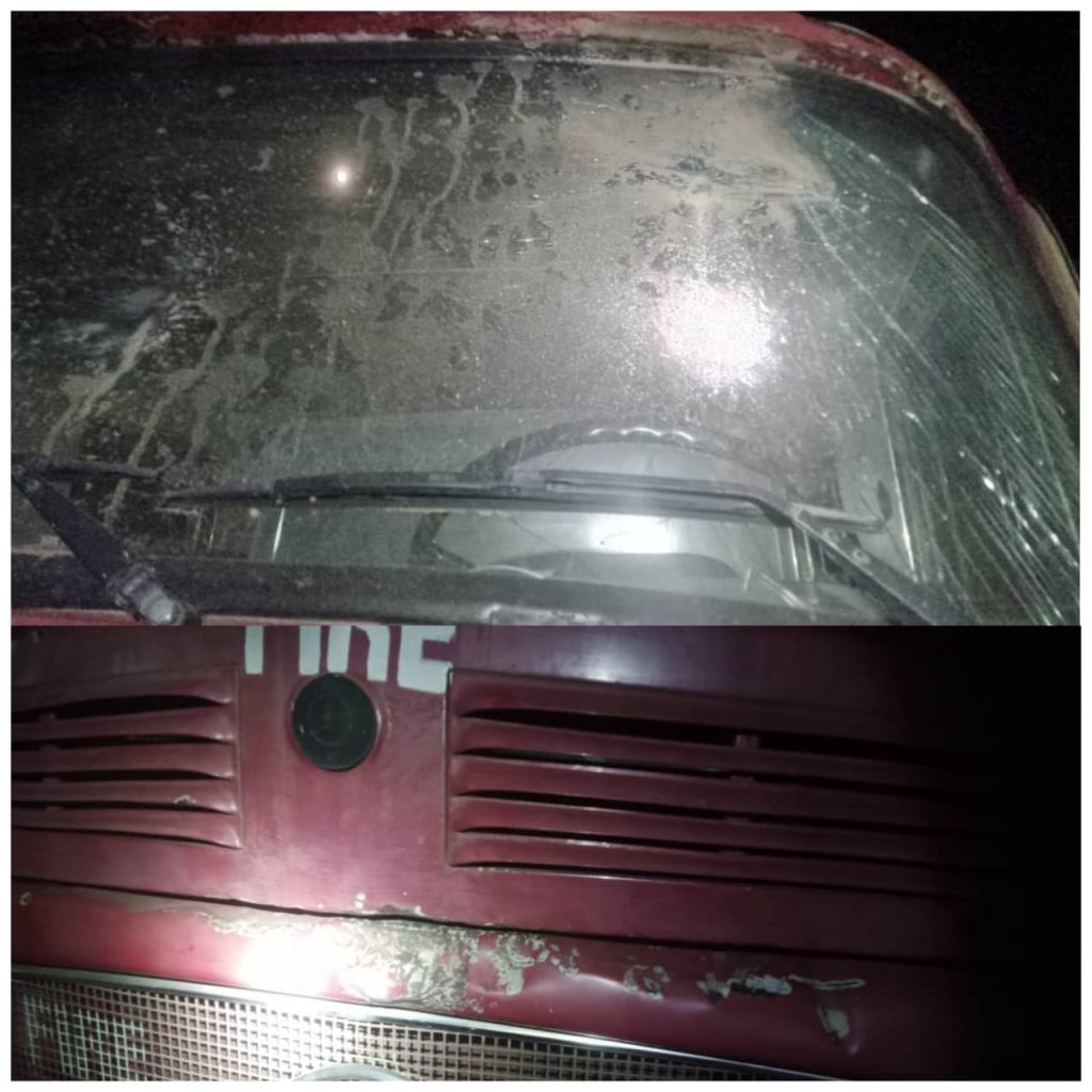 The fire tender truck number OY 173 A09, with four (4) men, led by CFS Ayegbokiki in-charge left for the scene of the state fire service was attacked by hundreds of angry mobs with dangerous weapons and in the process, the firemen sustained injuries and the fire tender was also vandalized to the extent that the windshield was smashed, the body of the vehicle was severely marked with strikes of cutlasses and stones.