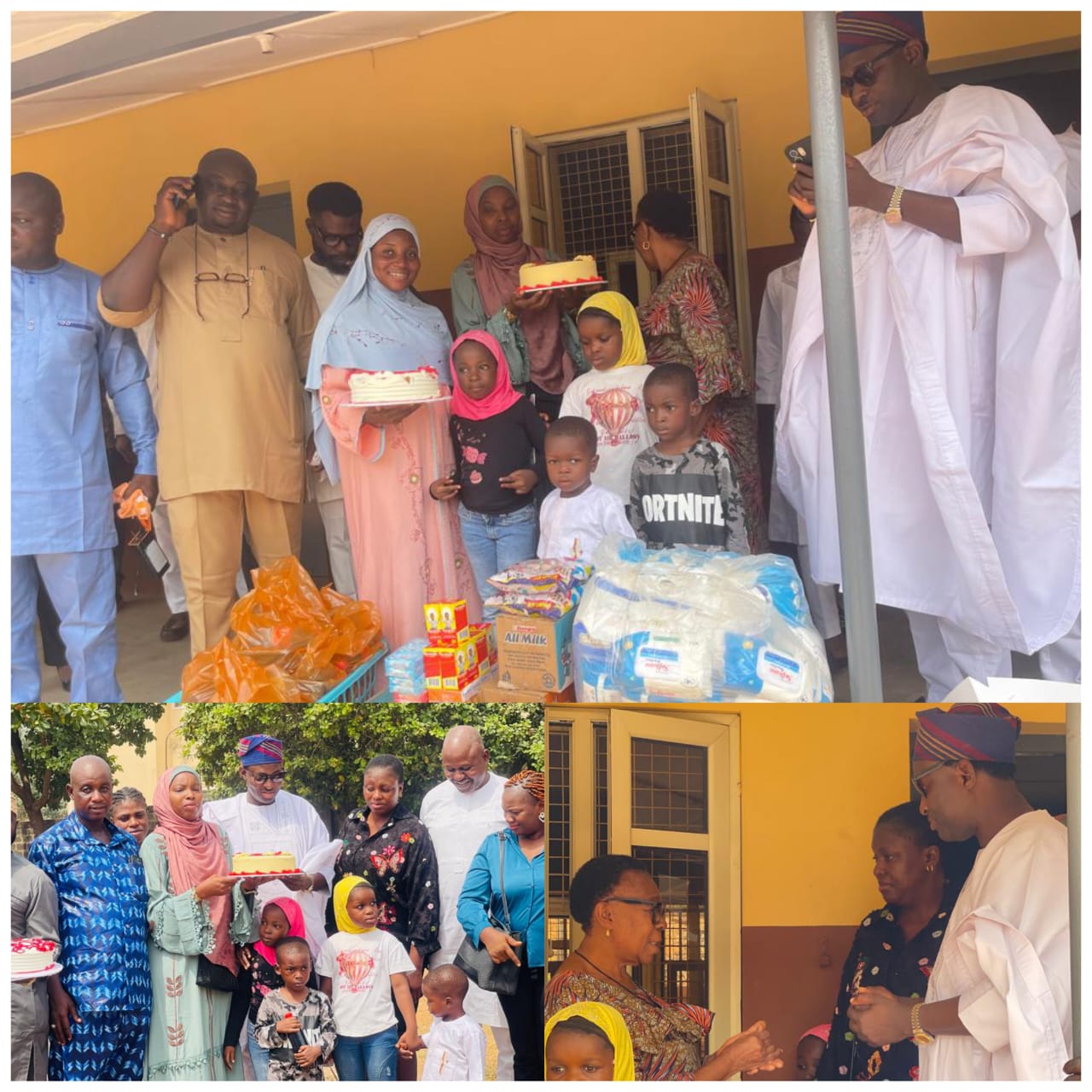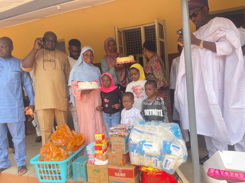 During the visit, Hon. Afolabi Idris donated food items, toiletries, Parked Milo, Tea, baby care materials, a golden jubilee cake, and other essential supplies aimed at supporting the day-to-day welfare of the children at the home.