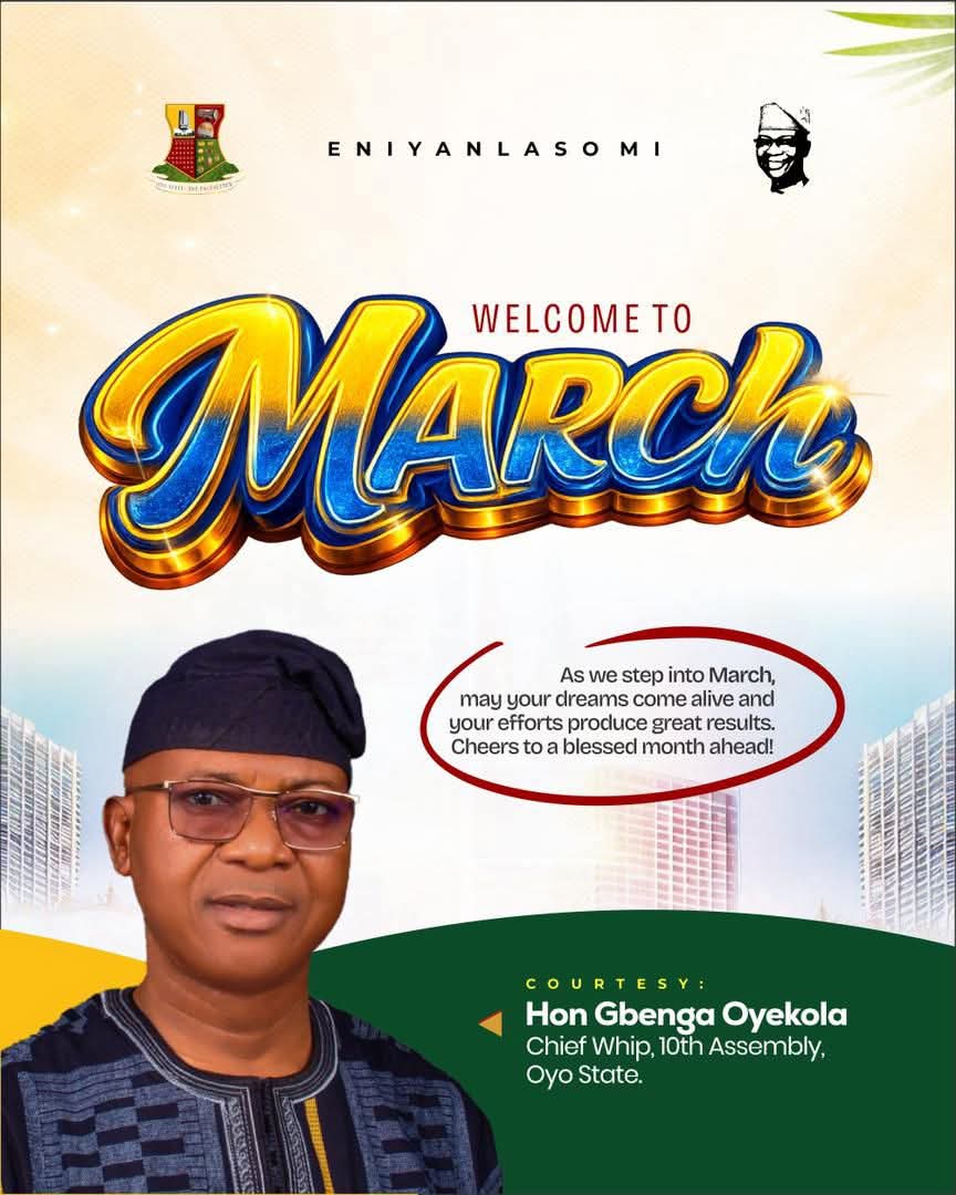 The Chief Whip of the Oyo State House of Assembly, Hon. Gbenga Joseph Oyekola, has urged constituents in Atiba State Constituency to embrace the new month with renewed determination towards growth, success, and collective advancement.