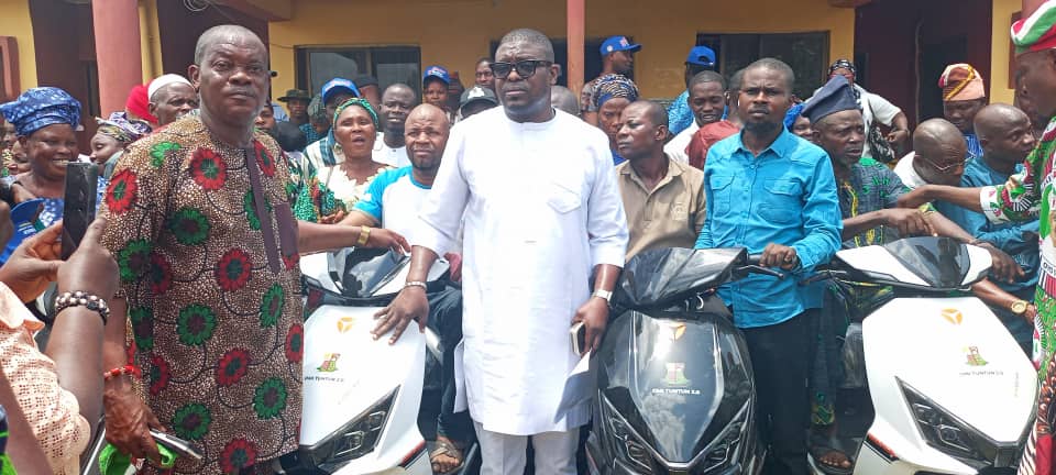 Hon. Adeojo, a respected local leader known for his hands-on approach to governance, pledged to prioritize federal interventions in agriculture, education, healthcare, and security if elected. “These electric bikes are more than gifts; they symbolize speed, innovation, and the forward momentum we’ll bring to our constituency,” he added.