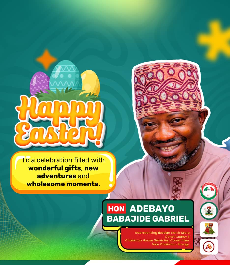 Oyo State house of assembly member representing Ibadan north constituency 2, hon. Adebayo Babajide Gabriel has extended warm Easter greetings to residents of the constituency, calling for unity, love, and renewed hope.