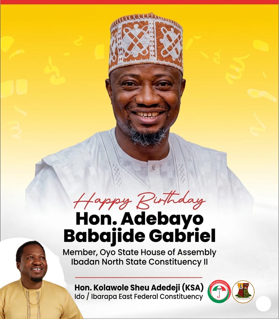 A prominent public figure, Engr. Kolawole Sheu Adedeji, has extended warm birthday felicitations to Adebayo Babajide Gabriel, the Honourable Member representing Ibadan North Constituency II in the Oyo State House of Assembly, describing him as a compassionate leader and a man with an exceptionally large heart.