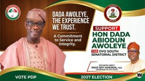 A front line aspirant for Oyo South Senatorial District ahead of the 2027 general election, Hon. Dada Awoleye, has commended members of the Oyo State House of Assembly for what he described as a bold and timely reaffirmation of their vote of confidence in Governor Seyi Makinde and the Speaker of the House.